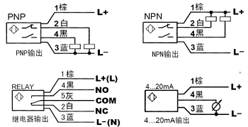 2、信號輸出:PNP,NPN,繼電器,模擬量(4~20mA)